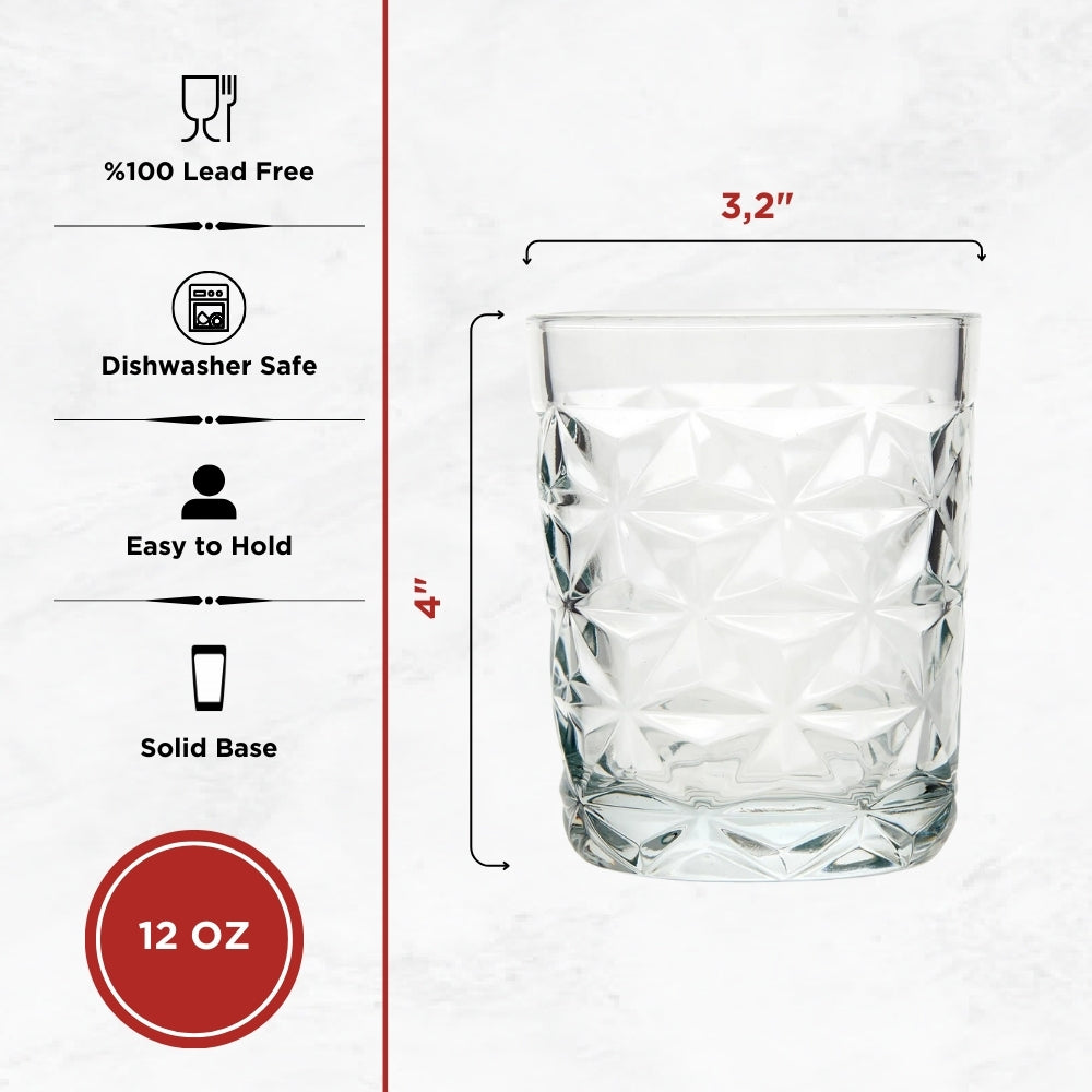 • Premium old fashioned glasses: 12 oz crystal-style tumblers for whiskey and cocktails.